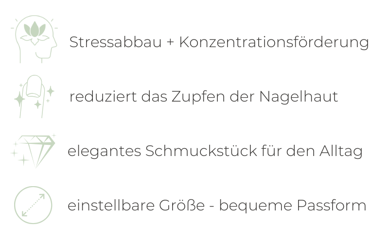 Ich liebe diesen Ring so sehr! Er hilft mir enorm, dass ich in stressigen Situationen eine Beschäftigung für meine Finger habe. Endlich habe ich eine Lösung für mein ständiges Nagelhaut zupfen.